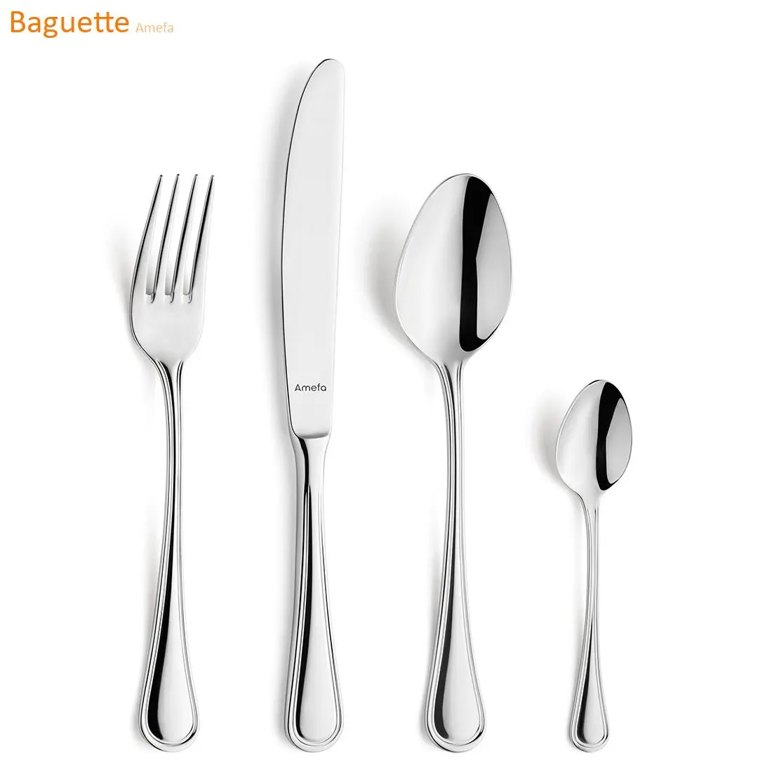 Die Besteck Serie BAGUETTE passt hervorragend in ein klassisches Ambiente der Gastronomie. Die Feinen Details auf den Griffen wirken auf den Betrachter interessant, ohne dabei zu verspielt oder gar verschnörkelt zu wirken.
