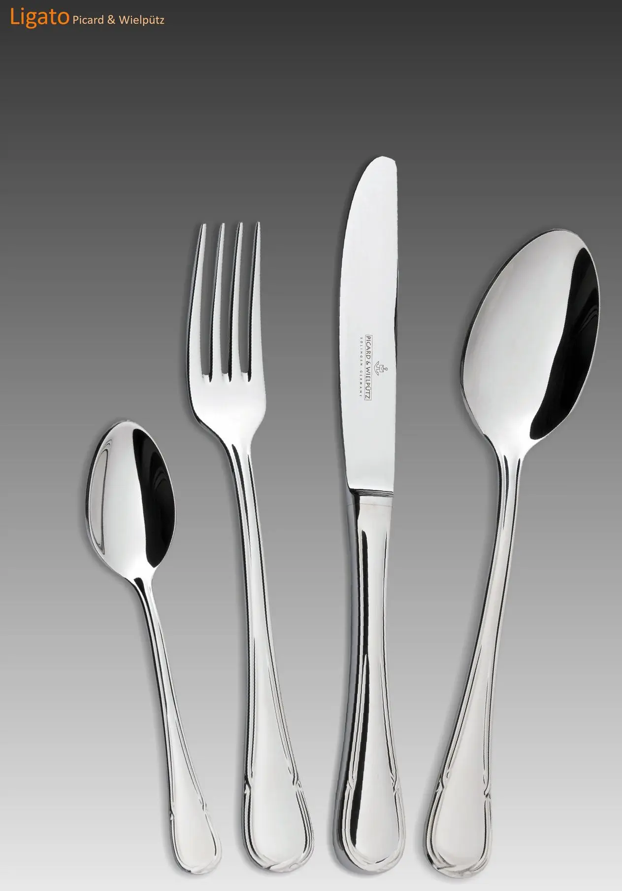 Das Besteck Modell LIGATO ist ein ganz poliertes, spülmaschinenfestes Besteck mit einer bewährten Materialstärke von 3,0 mm. Durch die abgerundeten Formen und der Materialstärke liegt das Besteck angenehm und wertig in der Hand
