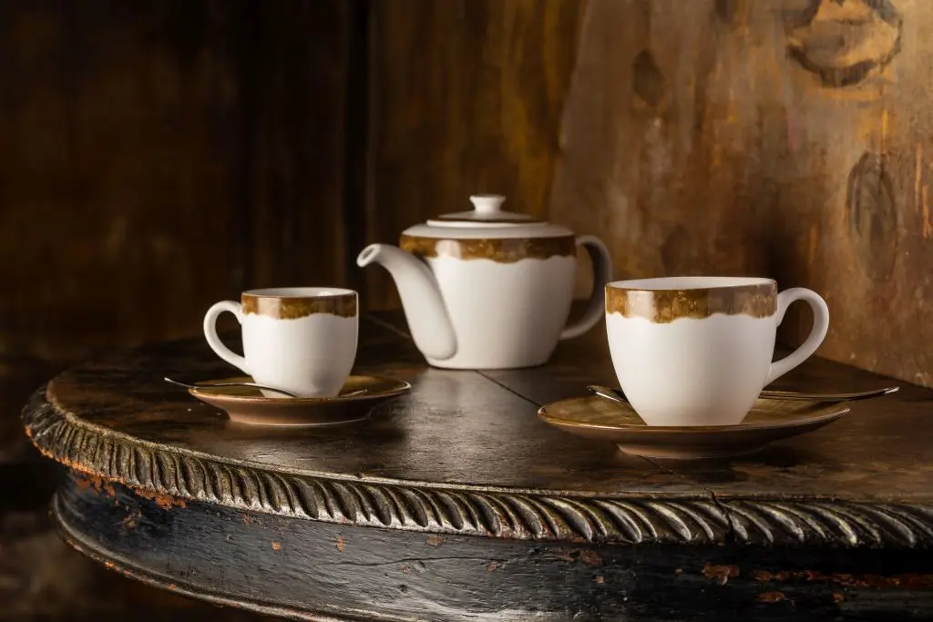 Die fein und nuanciert angeordnete Facettierungen auf Tellern und Tassen